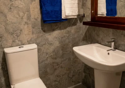 Les quatre chambres sont réparties de façon équilibrée autour des pièces principales, permettant à chacun de bénéficier de son propre espace et d’une réelle intimité. Chaque chambre dispose de sa salle de bain privative avec eau chaude, ce qui garantit un confort optimal, même pour les groupes ou les familles nombreuses. La literie de qualité et les oreillers à mémoire de forme apportent un véritable bien-être après une journée à explorer la région ou à profiter de la plage.