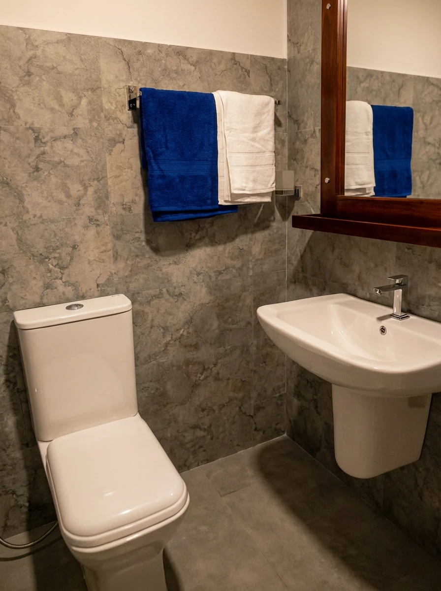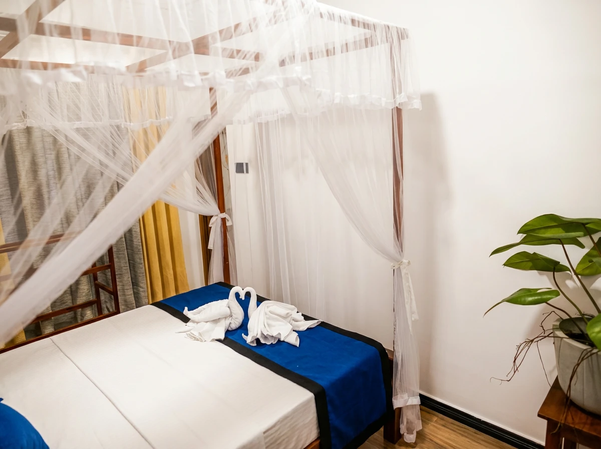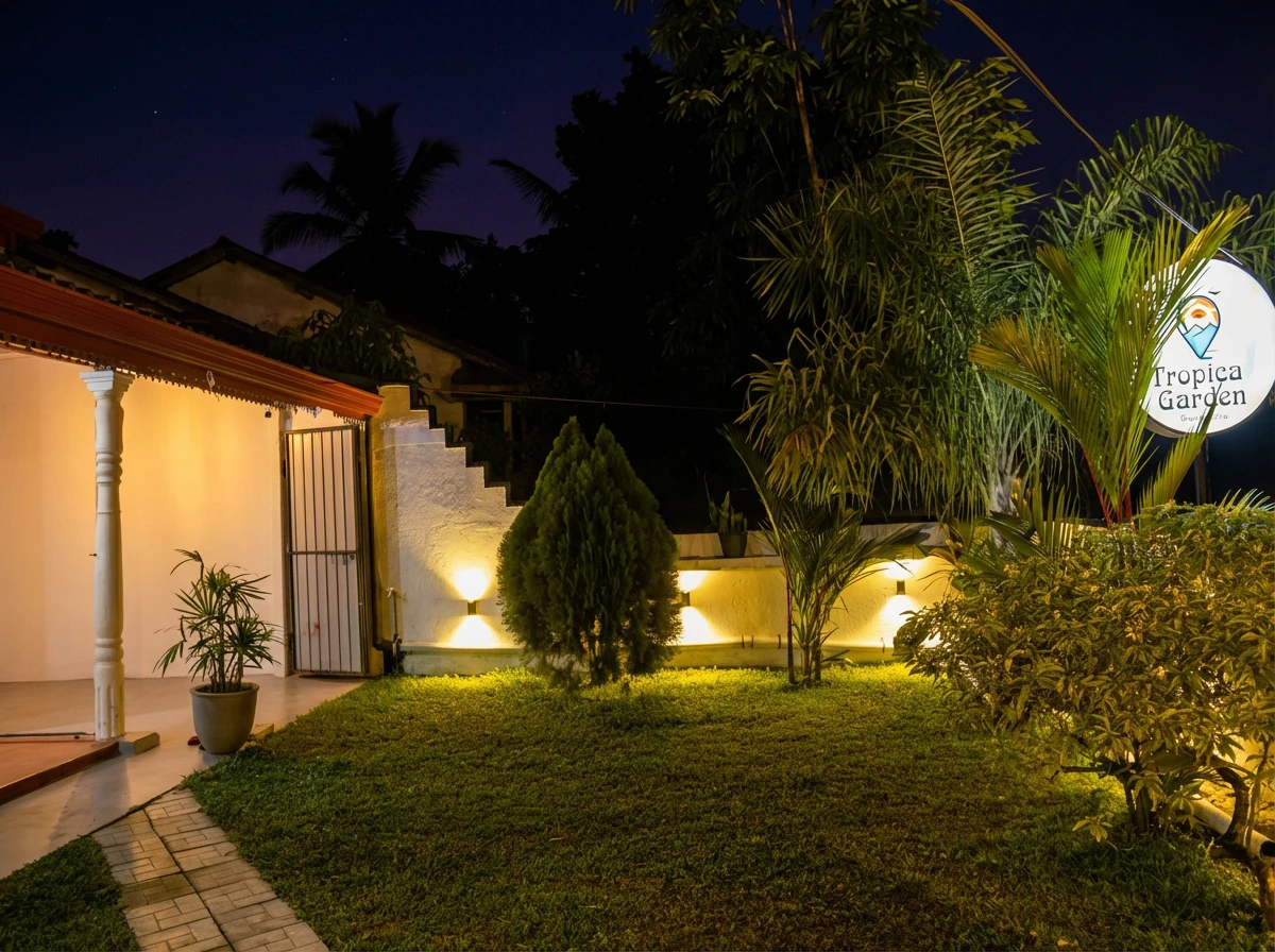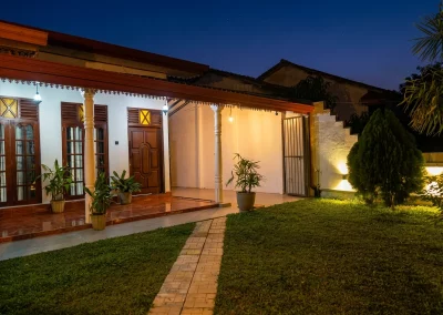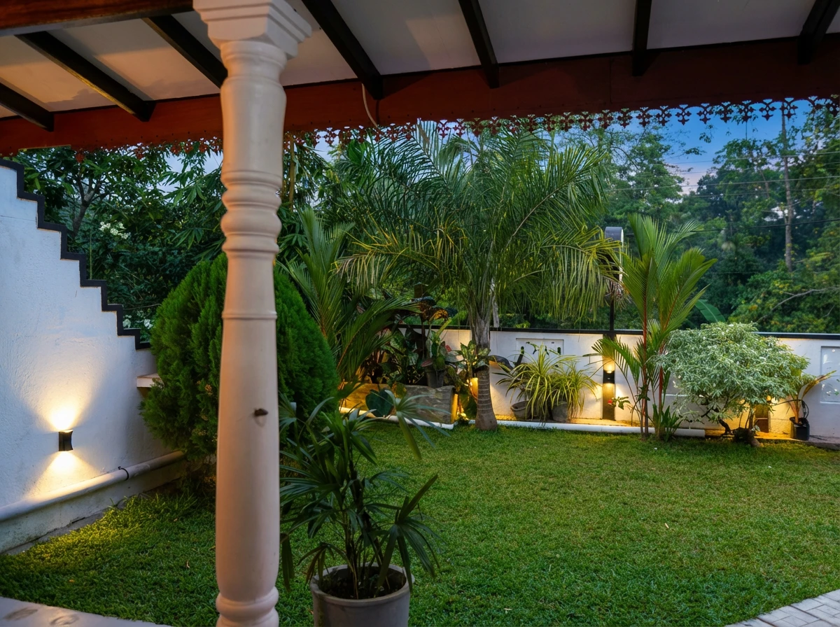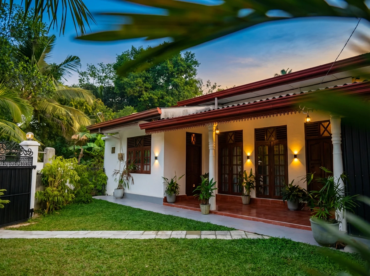 Les extérieurs prolongent naturellement les espaces de vie : le jardin, paisible et entouré de verdure, offre un cadre idéal pour prendre les repas, lire au calme ou simplement se détendre au rythme des soirées douces du Sri Lanka. Stationnement possible à l’avant ou à l’arrière de la villa et le Wi-Fi couvre l’ensemble de la maison, vous permettant de rester connecté en toute simplicité.
